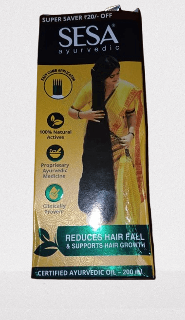 Découvrez SESA Ayurvédique Brevetée, un mélange de 18 herbes médicinales et 5 huiles essentielles bouillies dans du lait via Kshir Pak Vidhi. Réduit la chute des cheveux, traite et prévient les troubles capillaires. Commandez cette huile capillaire ayurvédique pour un cuir chevelu sain !